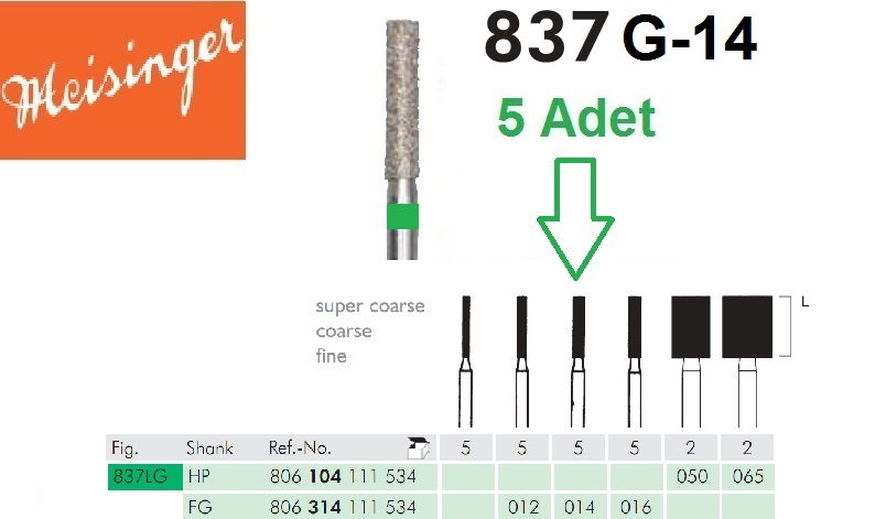 MEISINGER Elmas Frez Füsür ( 14 Boy ) - Yeşil Kuşak - 5 Adet ( Almanya )